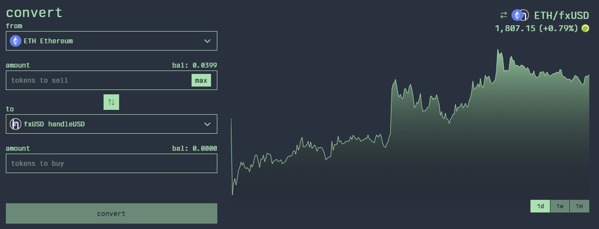 handle convert allows users to easily and rapidly trade between our multicurrency stablecoins (fxTokens). convert also supports a wide range of other tokens, including our protocol token $FOREX. users can convert tokens on both Arbitrum and Ethereum, via desktop or our mobile application. if there is a token you are looking for enter the address or symbol in the search bar. on desktop