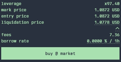 借款利率:协议向杠杆交易者借出基础资产所收取的费用。利率基于代币使用率,并支付给对手方(hLP)。借款利率随着交易者进出市场不断变化。请记住,这个费用每小时收取一次,所以请注意当前的利率。