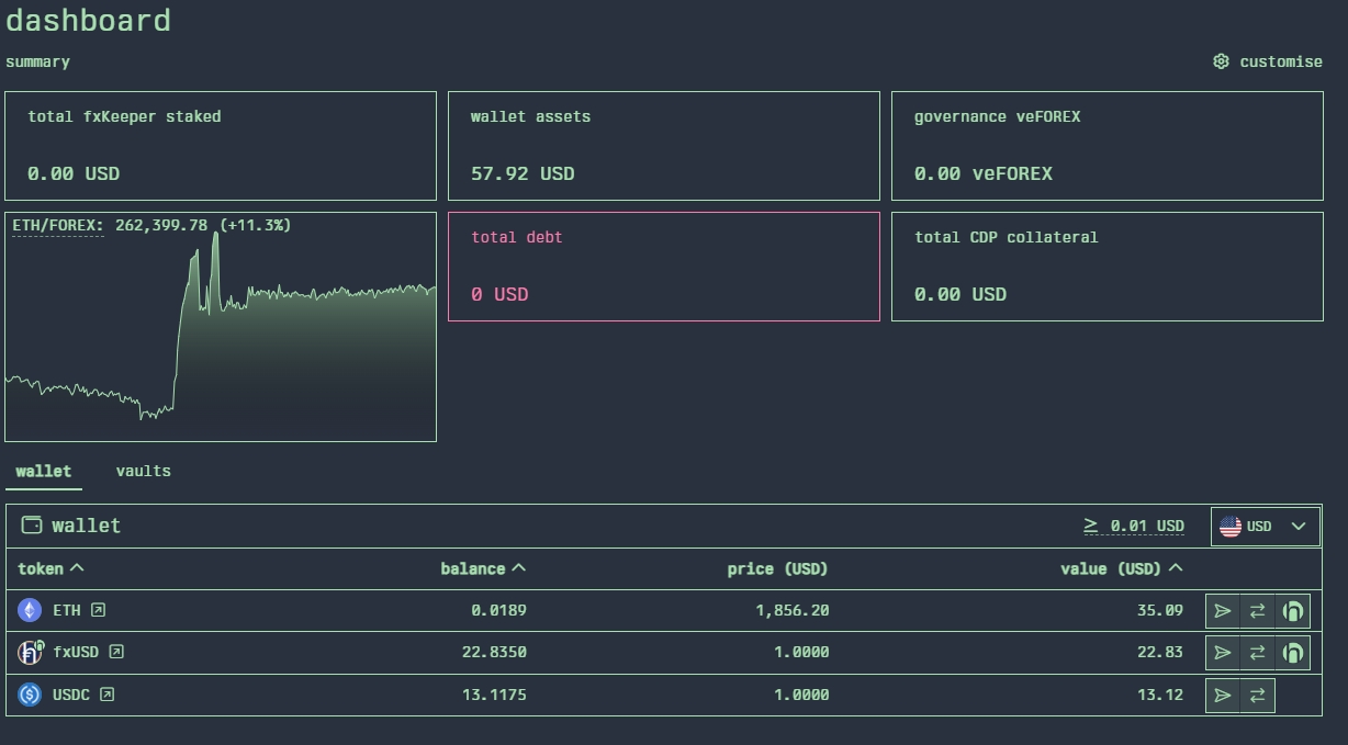 the dashboard is split up into two sections - a summary of your wallet & a more detailed view of your wallet holdings and vaults.